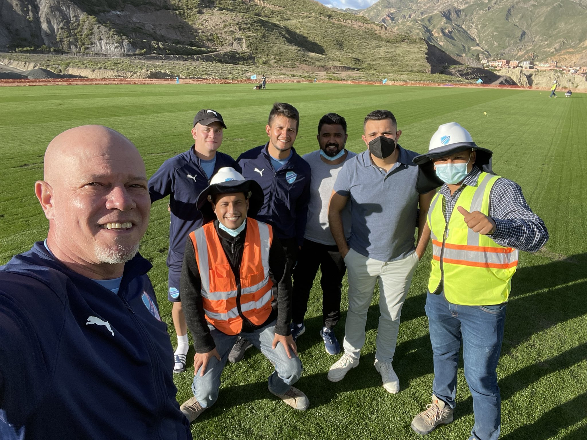 El DT de Bolívar se tomó su tiempo para visitar el predio deportivo del club en Ananta, incluso le dio el visto bueno al campo de juego donde se estima que los celestes ya podrán entrenar en este mes.