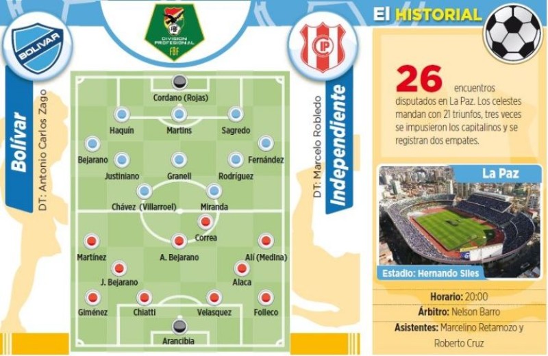 Bolívar buscará esta noche su tercer triunfo al hilo en el partido que disputará ante Independiente de Sucre (20:00), en el estadio Hernando Siles, por la undécima fecha del grupo B del torneo Apertura de la División Profesional.