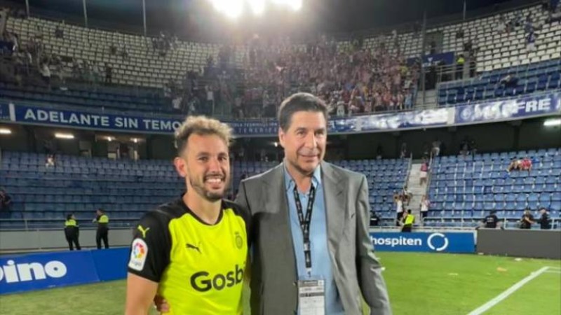 $!Claure con el delantero uruguayo Stuani, ayer en Tenerife.