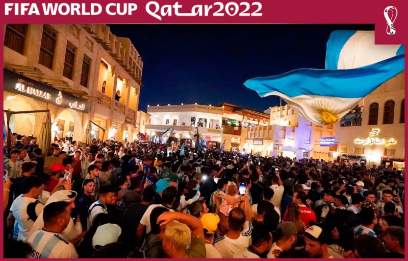 Cientos de simpatizantes de la Selección se concentran en el mercado de Souq Waqif, la esquina más concurrida del Mundial, en apoyo al equipo de Lionel Scaloni