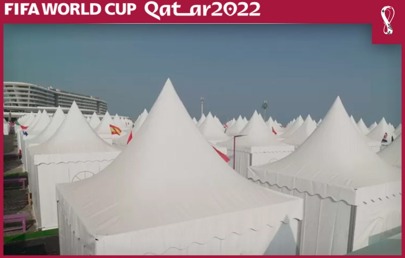 Incluso horas antes de que la mayoría de espectadores extranjeros llegaran a Catar, se podía escuchar maquinaria de trabajo y ver trabajadores aun alistando la villa. Según la página oficial para reservar una carpa en este lugar para fanáticos, dichas instalaciones serían premium, cosa que no es tan así.
