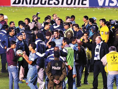 La Academia abrochó la inédita clasificación en Argentina, con aquel zapatazo de William Ferrerira, que rubricó el empate y el punto de oro. La victoria de ayer, con el agónico tanto de Juan Carlos Arce, sólo certificó la superioridad del equipo celeste, ante un Lanús que, en los dos partidos de la eliminatoria, no pudo encontrar el horizonte, y si lo hacía, terminaba chocándose con una organizada defensa, que es la piedra angular del juego celeste. Nelson Cabrera, Ronald Eguino y Luis Gutiérrez firmaron una eliminatoria de otra esfera, y anoche, el trabajo tampoco fue menor, aunque también es cierto, que Lanús –con Santiago Silva en ataque– siempre estuvieron huérfanos, sólo dependiendo del pelotazo a las espaldas. La sola mención de un remate de media distancia de Leandro Somoza, que intento sorprender a Romel Quiñonez, fue la única ocasión de peligro del cuadro Argentino, en el primer tiempo.