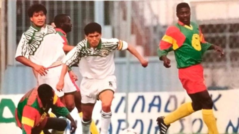 En uno de esos compromisos, Bolivia jugó por primera vez ante un equipo africano y su rival fue Camerún, el 11 de mayo de 1994, en el estadio Karaiskaiki, de Atenas